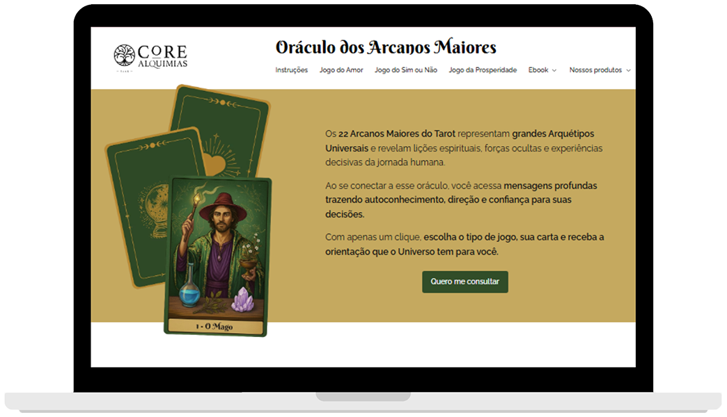 Um site interativo, desenhado para traduzir a linguagem simbólica do Tarot em conselhos claros e diretos para suas maiores dúvidas.